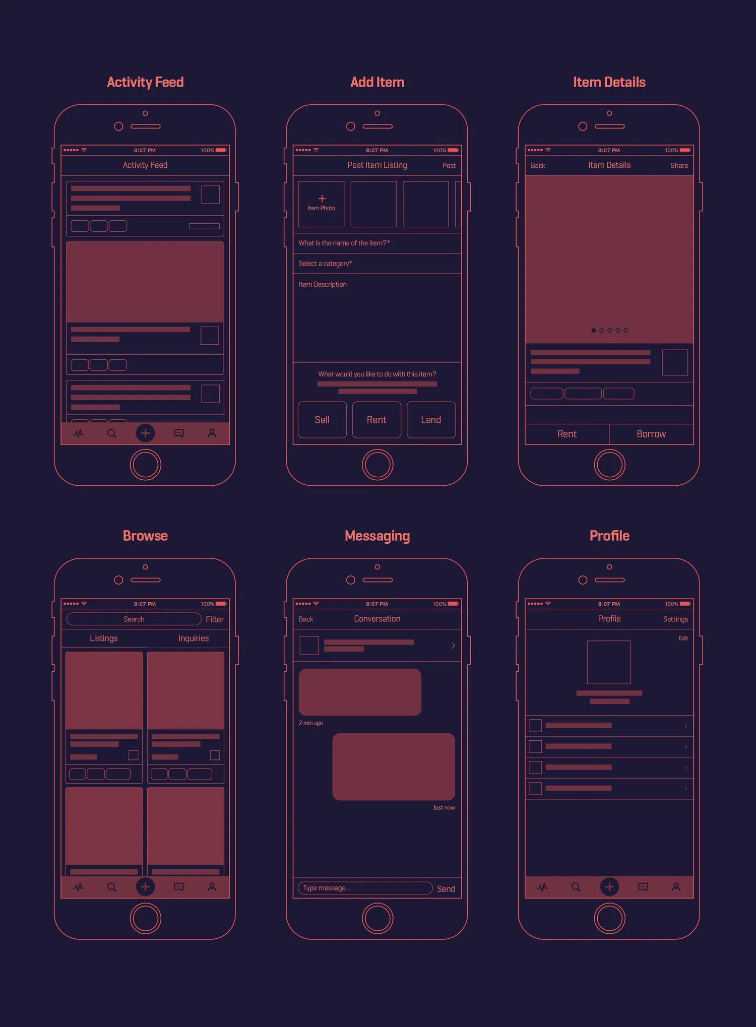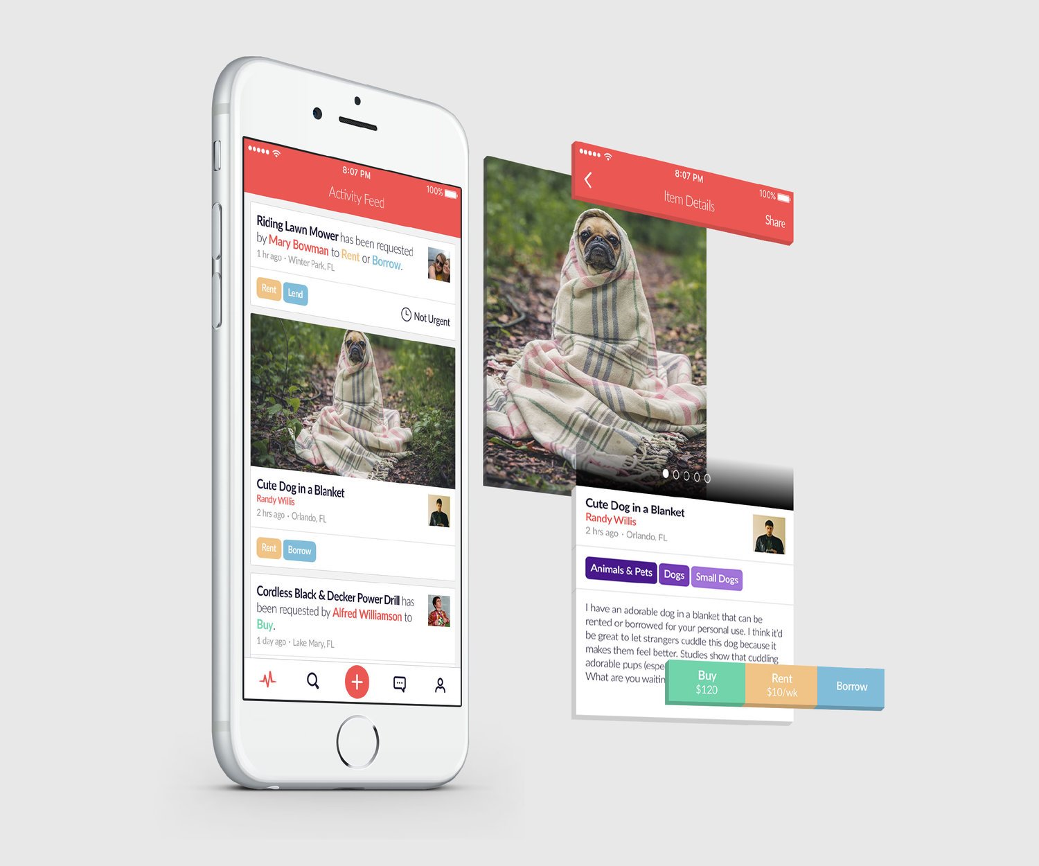A mobile application to borrow, rent, or buy items within social media circles that are controlled by the user. This app offers a safe way to connect with nearby users that have the items you need, whether temporarily or permanently.