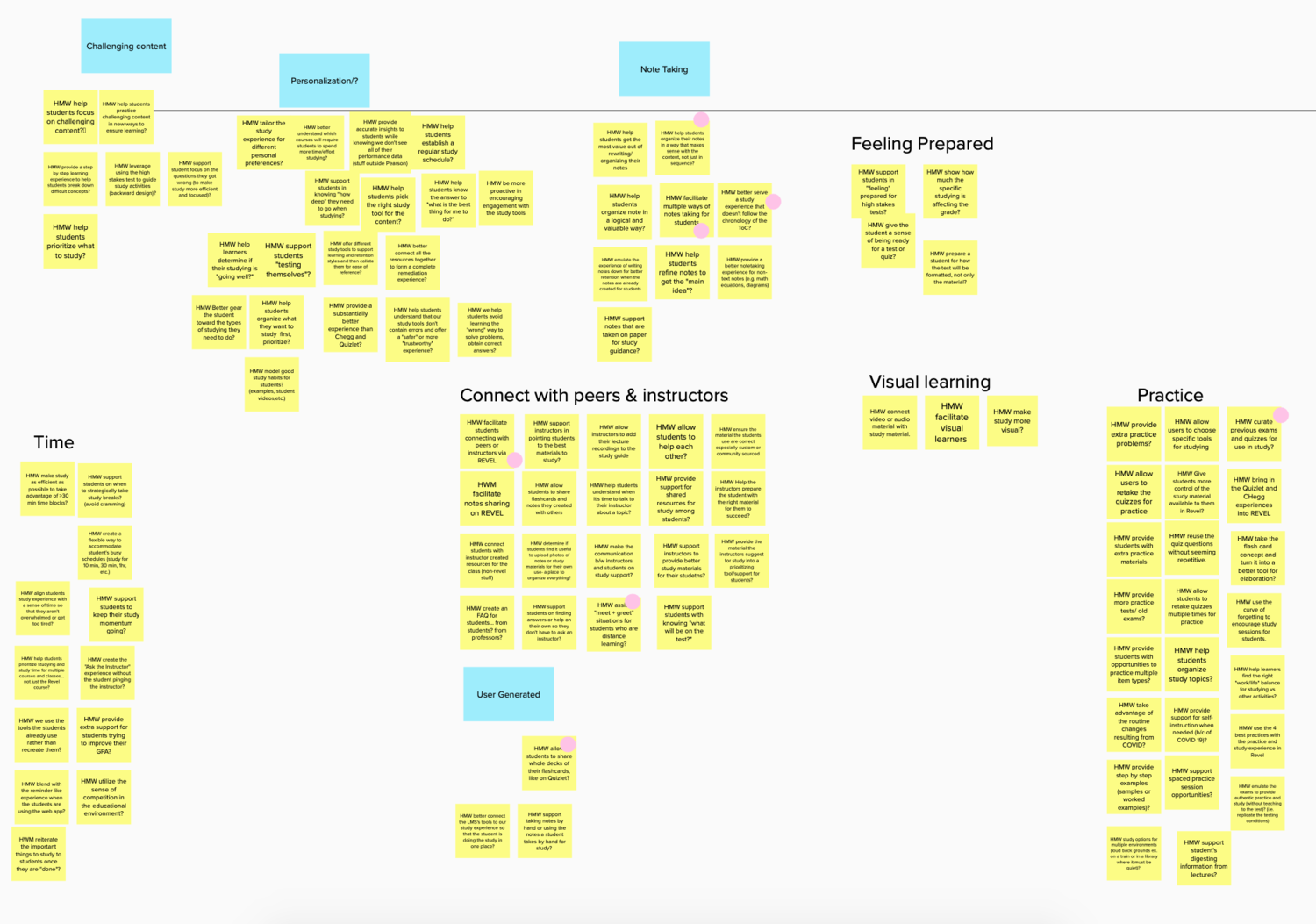 The How Might We’s were divided into groups to provide stronger areas of focus