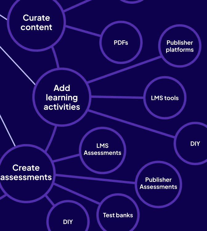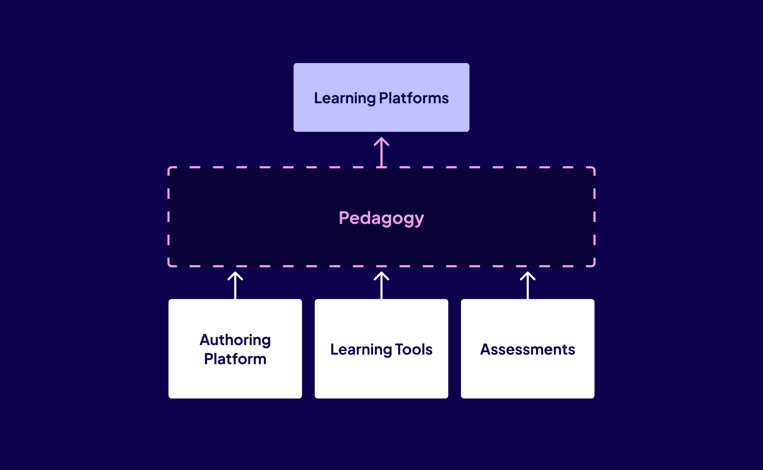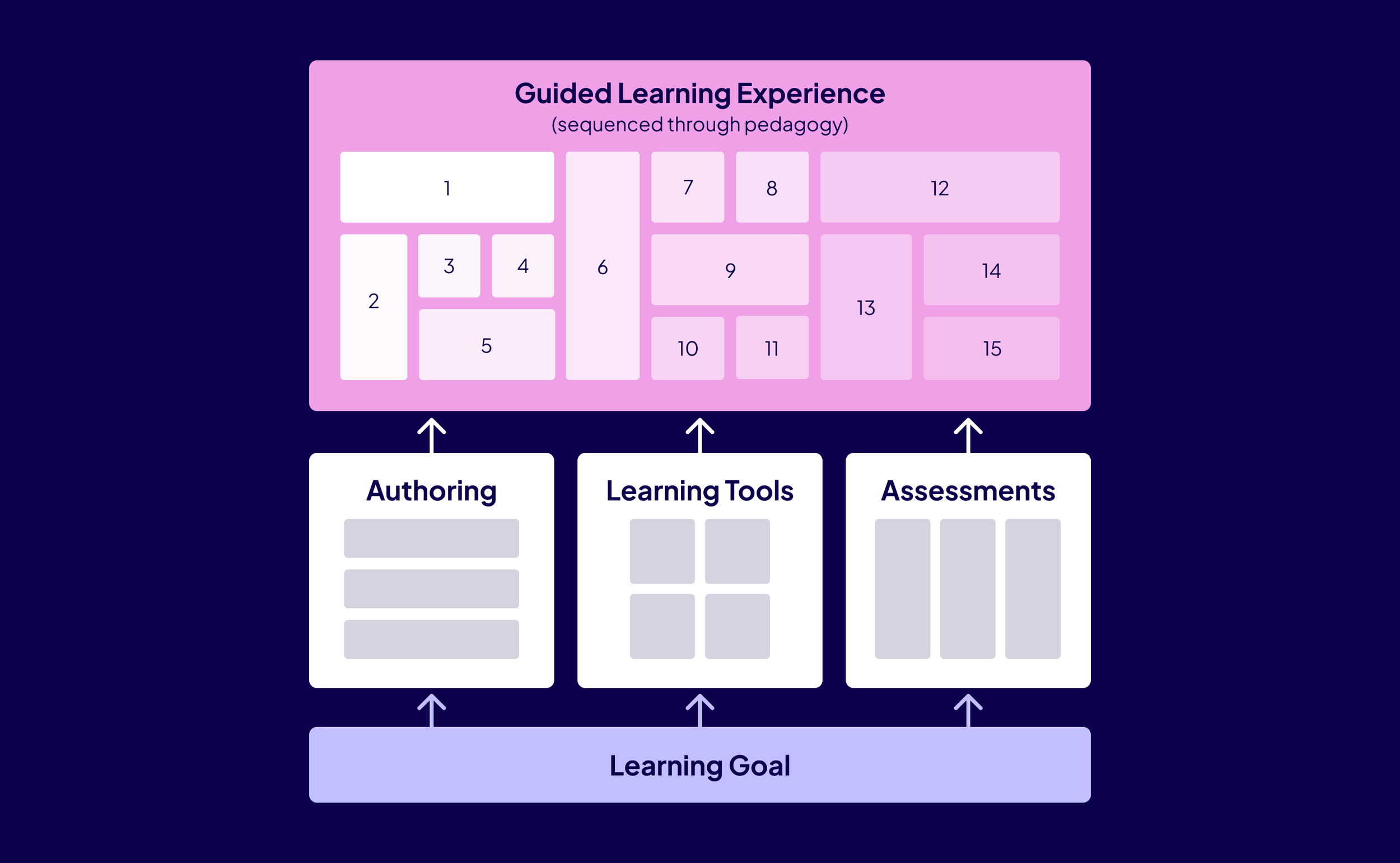To address this gap, the vision starts with the instructor’s learning goal. Pedagogy then sequences content, tools, and assessments into a guided learning experience with built-in checks for proficiency.